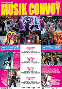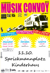 sozialpalast hat 2016 und 2017 das Kunstprojekt MUSIK CONVOY im Münsterland umgesetzt. In Anlehnung an den Musik Convoy des WDR aus den 80er Jahren, tourte der sozialpalast MUSIK CONVOY durch 10 Städte im Münsterland. Zusammen mit Einrichtungen der offenen Jugendarbeit wurde mit den Jugendlichen vor Ort je ein Festivaltag organisiert.